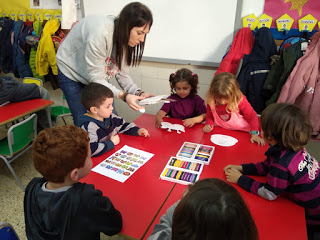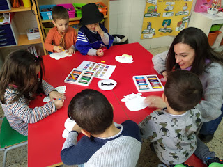 El dia 19 de febrer, van venir la Noemí i la Laura per fer-nos un Taller en família. El taller tractava en fer màscares d'animals pintats amb ceres i després van inflar uns globus que se li enganxaven les seves parts i es convertien en uns animals de granja.